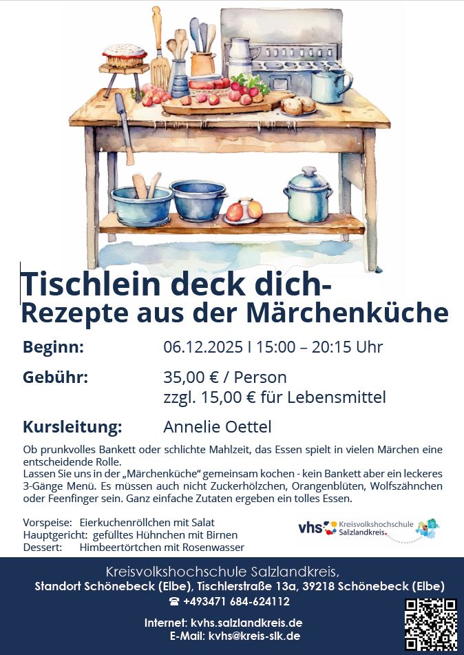 Nähere Informationen zu den einzelnen Kursen online oder telefonisch unter +49 3471 684-624014 (Aschersleben) und +49 3471 684-624114 (Schönebeck). Bitte vorher anmelden! Internet: kvhs.salzlandkreis.de.