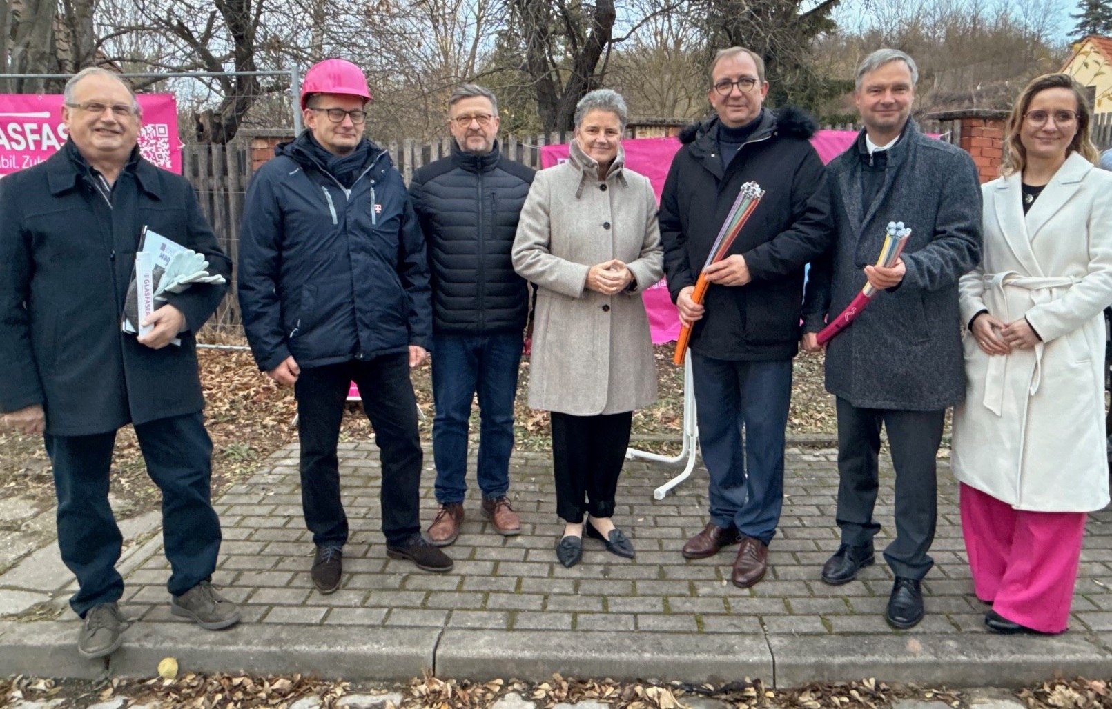 Infrastrukturministerin Lydia Hüskens und Landrat Markus Bauer geben letzten geförderten Abschnitt im Ort zur Nutzung frei. Damit schließt Salzlandkreis endgültig das Projekt zum flächendeckenden Breitbandausbau in der Region ab.